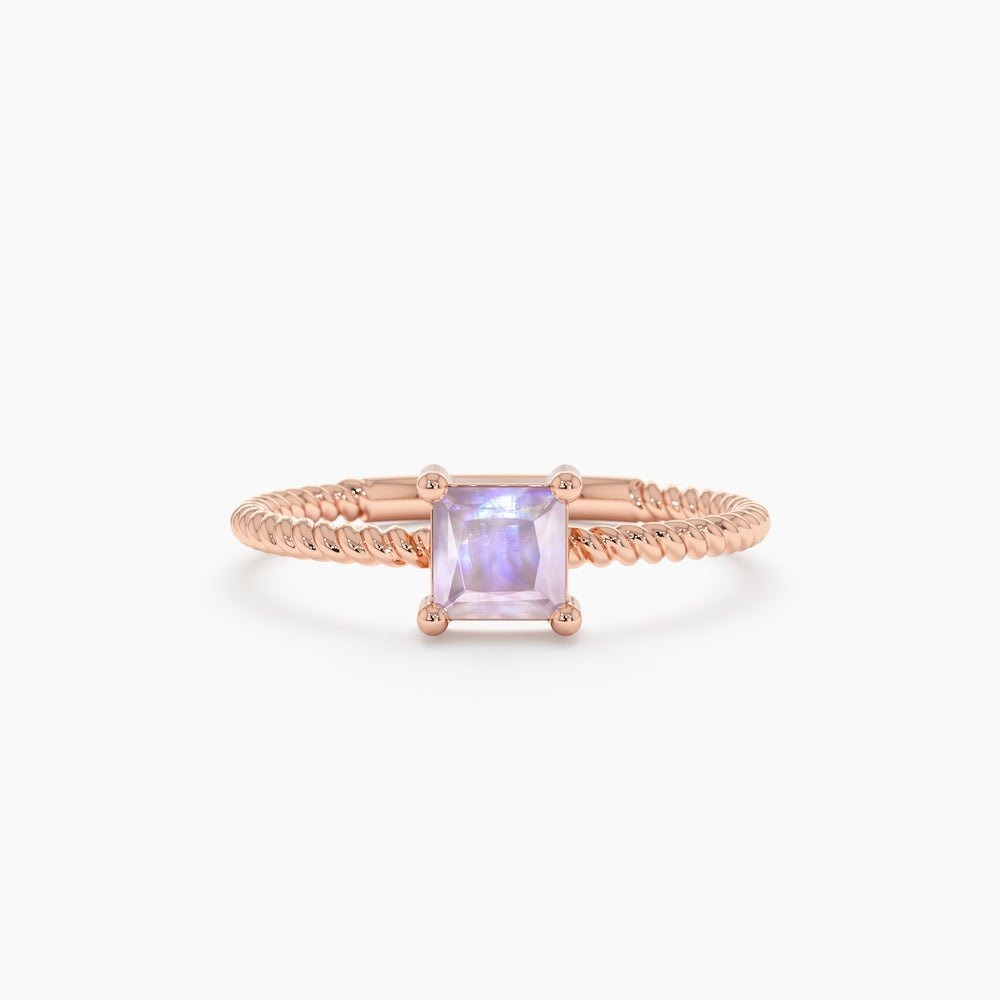 18K Solid Gold Square Amethyst Candy Cocktail Ring
