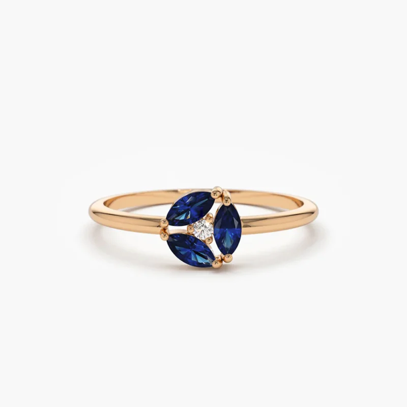 Elegant 14K solid gold ring featuring a cluster of marquise-cut sapphires—crafted for timeless charm, bold color, and refined sophistication.