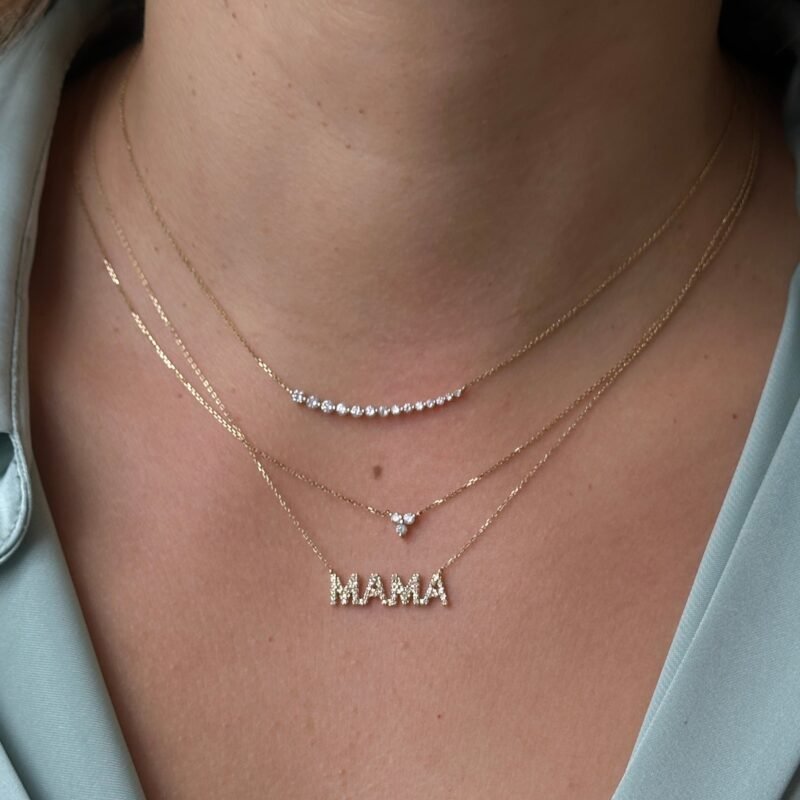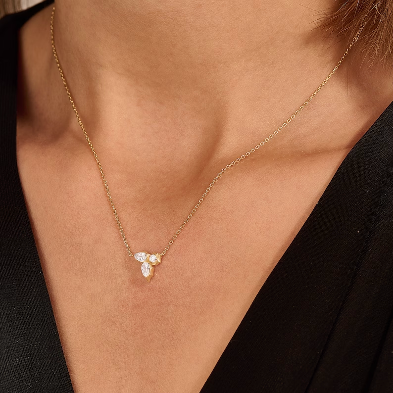 18k Solid Gold Moissanite Diamond Trio Necklace