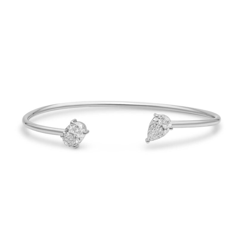 18k Solid Gold Pear and Oval Bangle