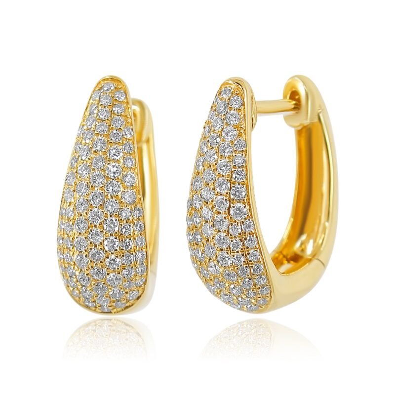 Classic pavé brilliance meets modern luxury—14 x 6 mm 18K solid gold hoops set with 0.73 CTW Premium Moissanite for all-day sparkle.