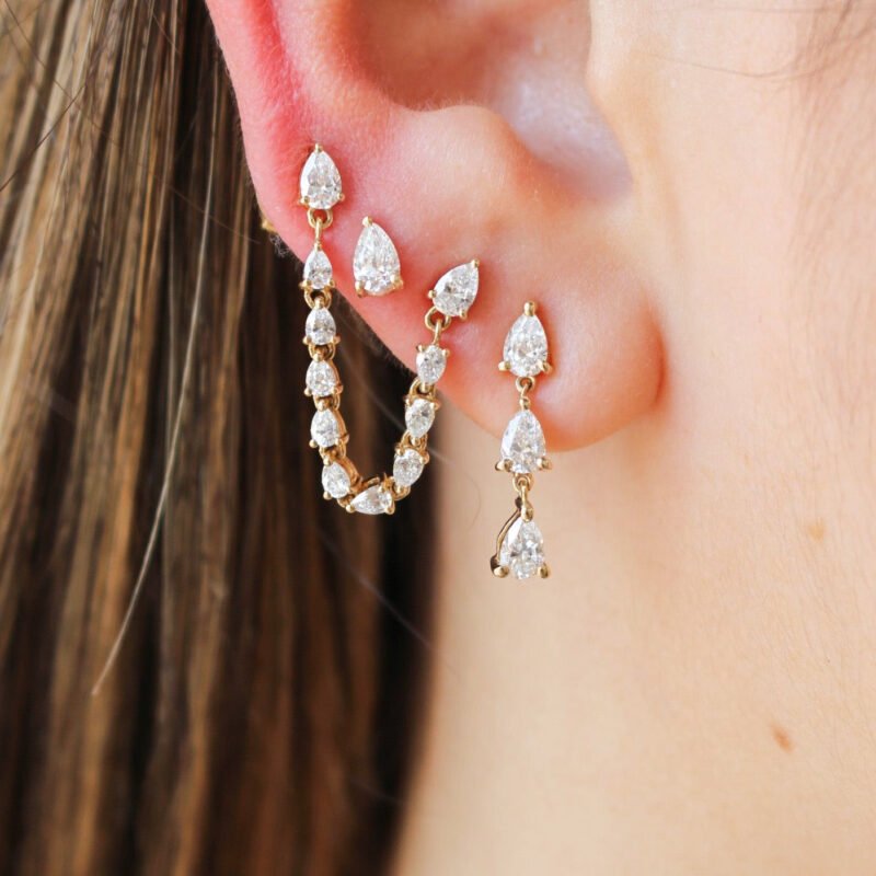 18k Solid Gold Multi Pear Moissanite Diamond Connecting Earring