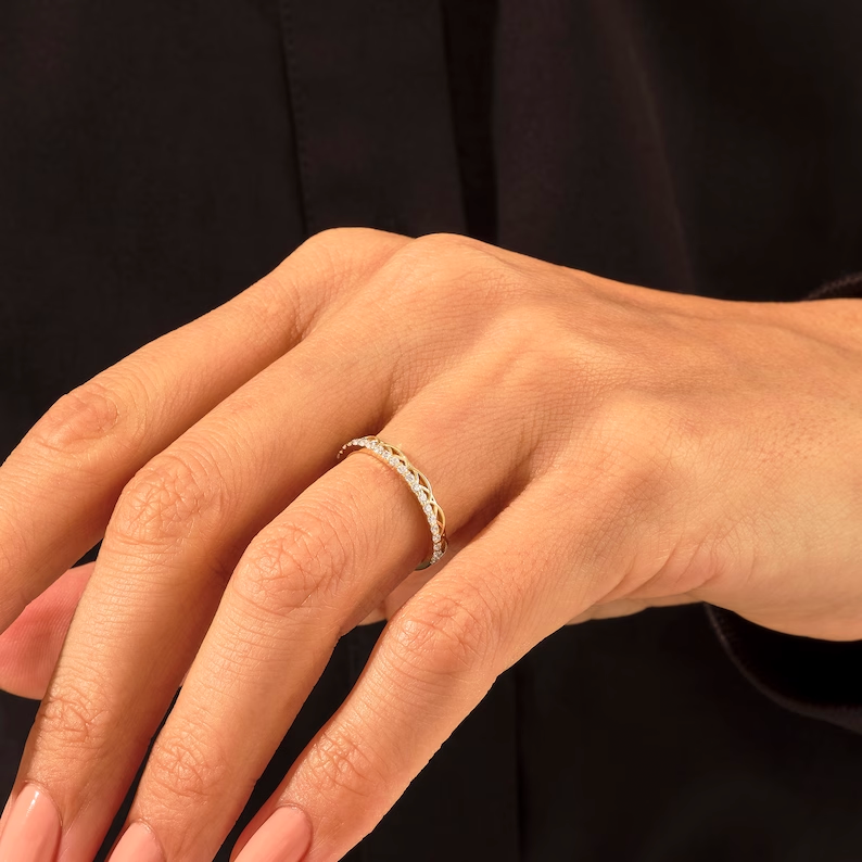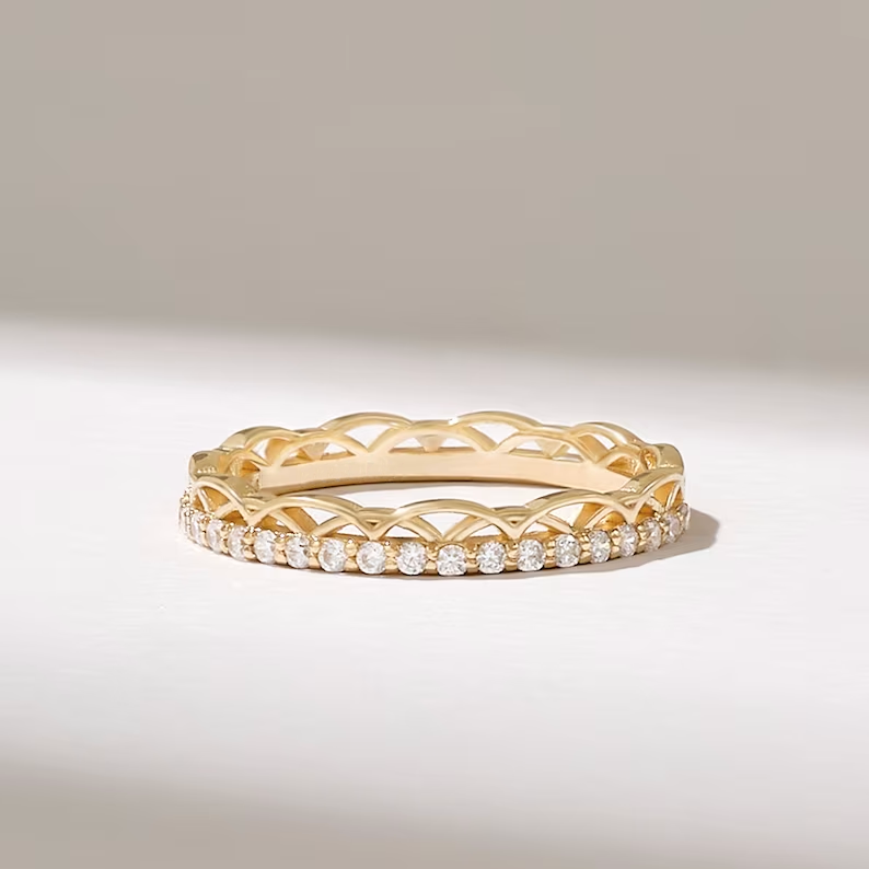 Braided Bezel Natural Diamond | 18k Women’s Eternity Band | Unique Bridal Stack Ring