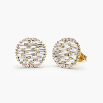 14k Baguette and Round Natural Diamond Studs for the modern Women
