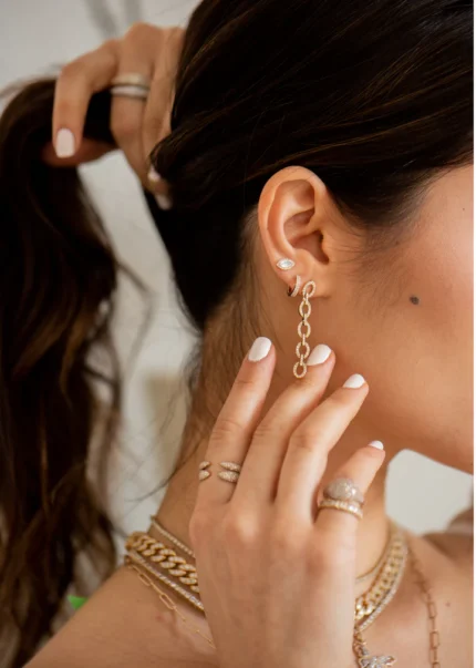 The 14 Karat Oval Natural Diamond Danglers add a touch of elegance to any look. Crafted in 14K solid gold, these earrings feature a sleek oval design with a modern, sophisticated flair. Available in white, rose, or yellow gold.