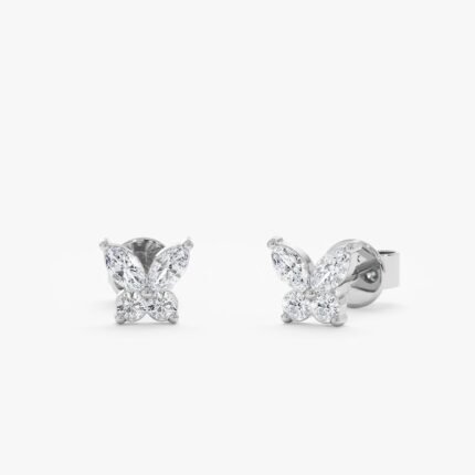 Celebrate the beauty of spring with our Marquise Natural Diamond Butterfly Studs. Crafted in 14k yellow gold, these earrings feature delicate butterfly silhouettes adorned with shimmering marquise-cut diamonds for a touch of elegance and whimsy.