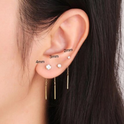 The Karat Store's Minimalist Diamond Earrings showcase natural diamonds set in a sleek, understated design. These elegant earrings add a touch of sophistication to any outfit, perfect for both everyday wear and special occasions.