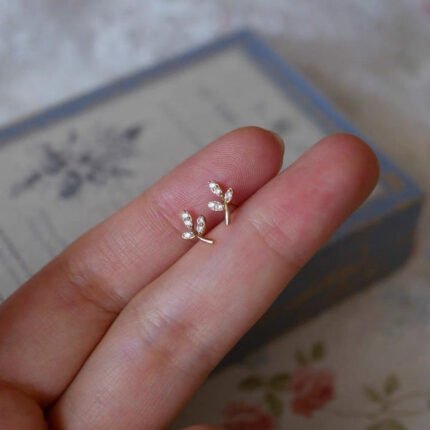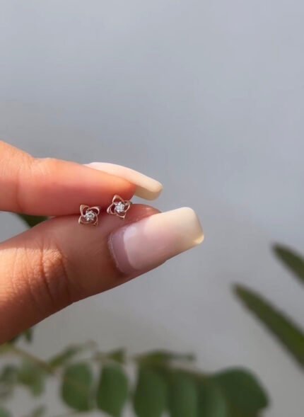 The Karat Store's Minimalist Natural Diamond Leaf Stud Earrings showcase natural diamonds set in a delicate leaf design. These elegant and understated earrings add a touch of sophistication to any outfit, making them perfect for everyday wear or special occasions.