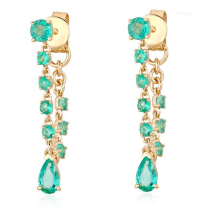 Elegant 14K solid gold connecting earring featuring a pear-cut emerald and lab-grown diamonds—crafted for modern glamour and refined sparkle.