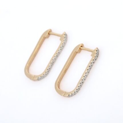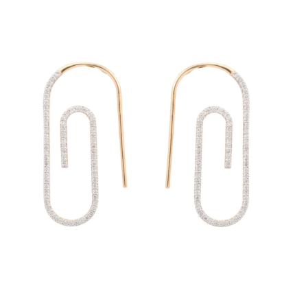 The 14K Gold Paper Clip Diamond Earrings showcase 1.0 carat of round diamonds set in a pave design. Crafted from 14K solid yellow gold and weighing 3.46 grams, these earrings offer a modern and sophisticated touch.