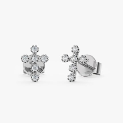 Express your faith with elegance in these Natural Diamond Cross Stud Earrings. Crafted in solid gold, adorned with sparkling diamonds.