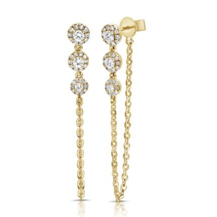 18k Gold Hoop Spaced Bezel Moissanite Diamond Connecting Earring