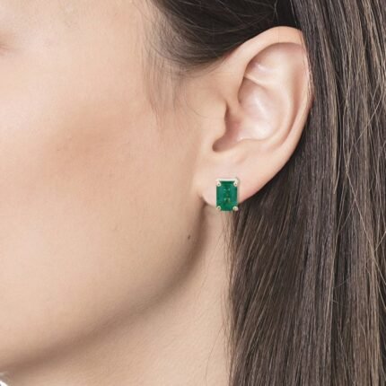 Timeless 14K solid gold stud earrings featuring vibrant green emeralds—crafted for everyday elegance, classic charm, and refined sophistication.