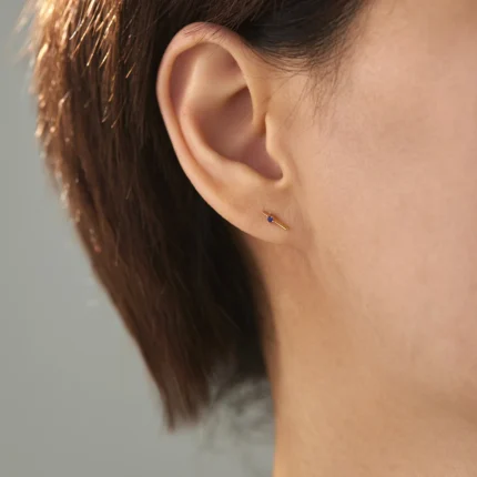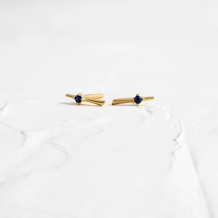 Elegant 14K solid gold sapphire bayonet earring studs, combining the deep blue of sapphires with a sleek and contemporary design for a sophisticated accessory.