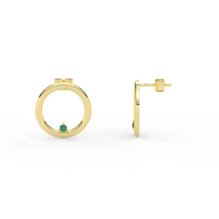 Elegant 14K solid gold earrings featuring an open circle design with natural emeralds, offering a timeless and sophisticated look perfect for any occasion.