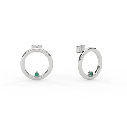 14K Solid Gold Open Circle Natural Emerald Earrings