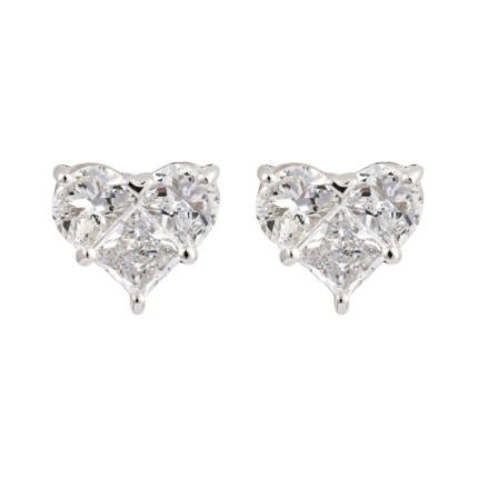 14K Gold Moissanite Diamond Prong Heart Earring Stud