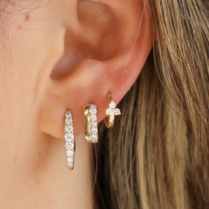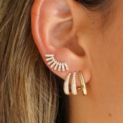 The 14K Curved Baguette Natural DiamondHelix Piercing is an exquisite choice for adding a touch of luxury to your ear. Crafted in 14K solid gold and available in white, rose, or yellow gold, this piercing features diamonds of VVS1 clarity and D color.
