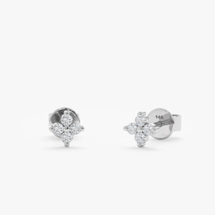 14K Gold Moissanite Diamond Triple Leaf Flower Stud Earring