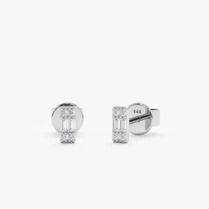14K Solid Gold Baguette Emerald Natural Diamond Earrings