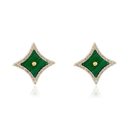 14K Solid Gold 5.241 Ctw Malachite Sparkle Shape Stud Earrings