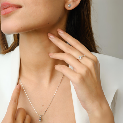 A beautiful 14K solid gold jewelry set featuring aquamarine stones, offering an elegant combination of a necklace, earrings, and a ring for a coordinated, timeless look.