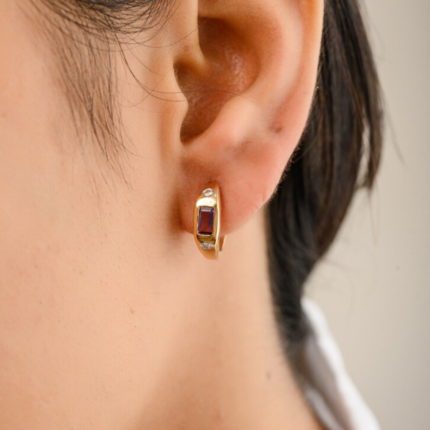 Elegant 14K solid gold amethyst huggie earrings, combining rich purple hues and timeless design for a chic, versatile accessory.
