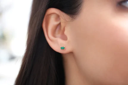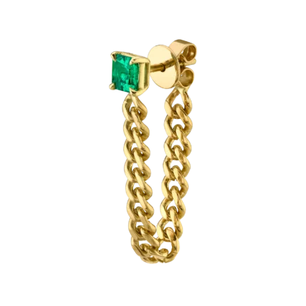 14K Solid Gold Asscher Cut Emerald Cuban Link Loop Earring