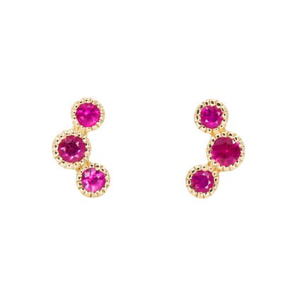 14K Solid Gold Ruby Bezel Trio Climber Earring
