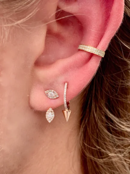 The Riley Ear Cuff in 18k Gold features 30 Moissanite diamonds (0.12 ct) for a shimmering accent. BIS & GRA-certified. No piercing required—perfect for stacking!