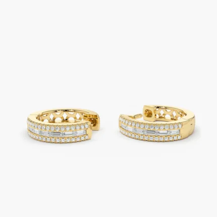 "Elegant 18k Solid Gold Pave Moissanite and Baguette Hoop Earrings – a dazzling combination of sparkle and sophistication for every occasion."
