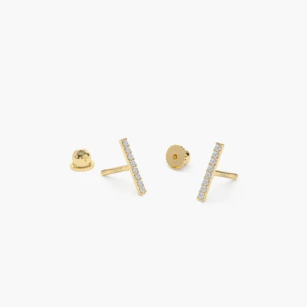 Get this Product in 14k Gold "Elegant 18k Gold Baguette and Round Moissanite Diamond Earrings – a beautiful combination of baguette and round Moissanite diamonds, perfect for a classic, radiant style."