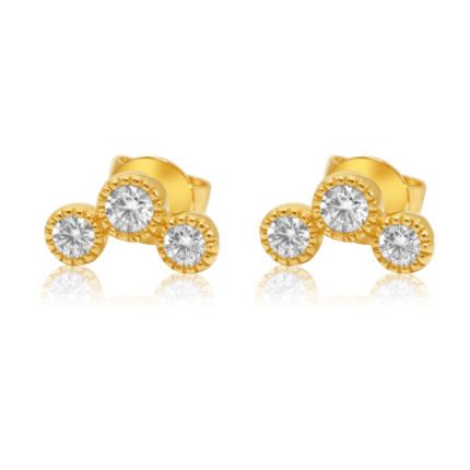 14K Gold Moissanite Diamond Trio Bezel Curve Earring