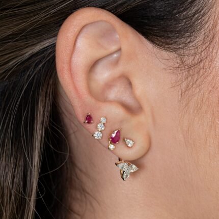 14K Gold Moissanite Diamond Triple Leaf Flower Stud Earring