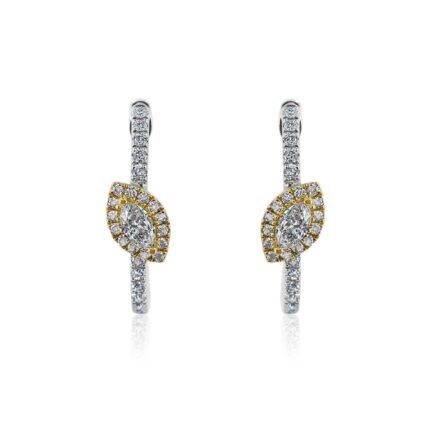14K Gold Yellow Moissanite Diamond Marquise Hoop Earrings
