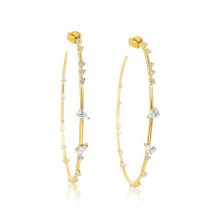 "Elegant 14K Gold Multi Moissanite Diamond Prong Large Hoop Earring – a striking design with multiple Moissanite diamonds set in prongs, perfect for a sophisticated, radiant style."