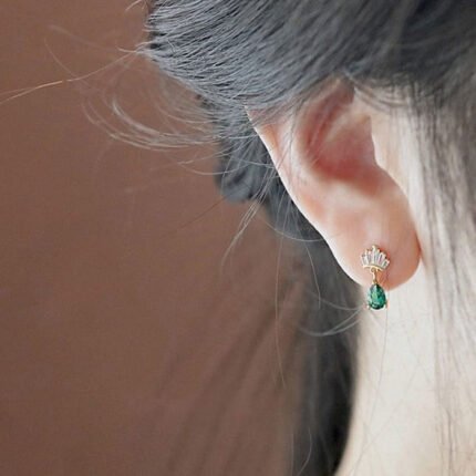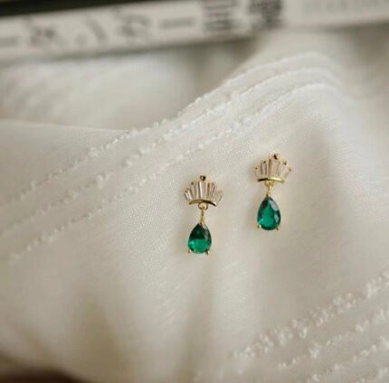 Elegant 14K solid gold crown stud earrings with emeralds and Natural diamonds, combining vibrant color and sparkling brilliance for a timeless accessory.