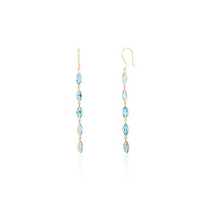 Elegant 14K solid gold drop earrings featuring marquise-cut blue topaz gemstones—crafted for graceful movement and radiant sophistication.