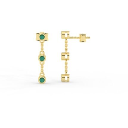 Graceful 14K solid gold dangle earrings featuring vivid emerald drops—perfect for adding a touch of luxury and timeless elegance to any outfit.