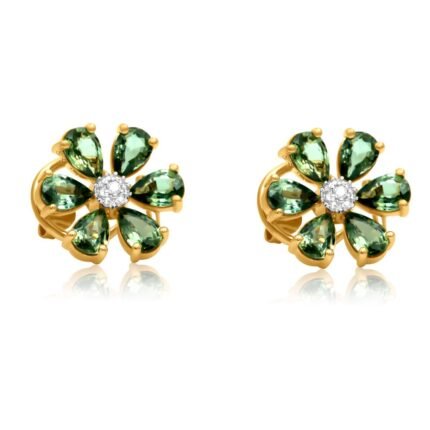 14K Solid Gold Diamond Green Sapphire Flower Earring