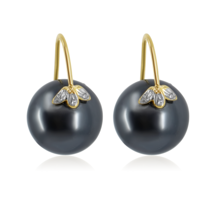 14K Solid Gold Diamond Grey Freshwater Pearl Earring
