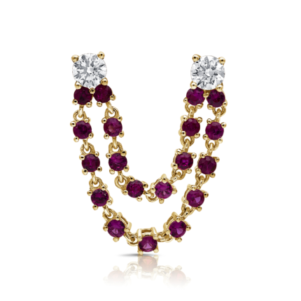 14K Solid Gold Diamond Double Ruby Connecting Earring