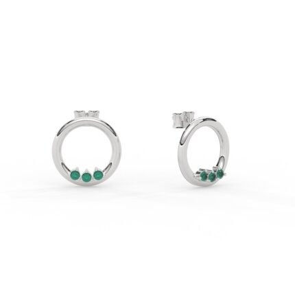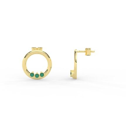 A chic pair of 14K solid gold earrings featuring an open circle design with natural emeralds, offering a modern and elegant touch to any collection.