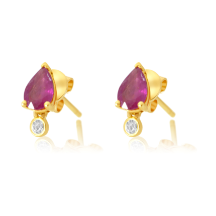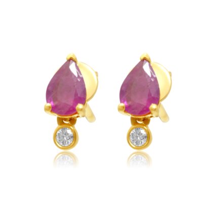 14K Solid Gold Diamond Ruby Pear Stud Earring