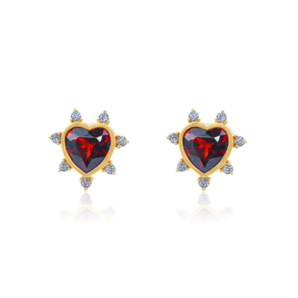 14K Solid Gold Diamond Spikes Garnet Heart Earring