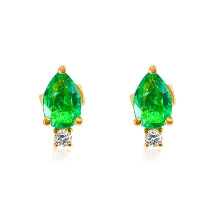 Elegant 14K solid gold stud earrings featuring pear-shaped emeralds surrounded by sparkling diamonds, offering a timeless and sophisticated design.