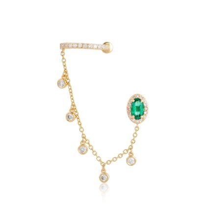 14K Solid Gold Diamond Oval Emerald Connecting Ear Cuff