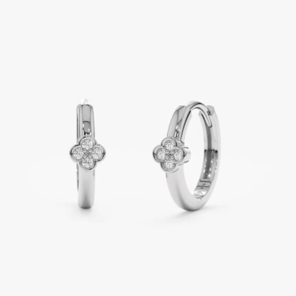 Elevate your luck and style with our Dainty Natural Diamond Clover Huggie Earrings. Crafted from 14k solid gold, these huggies feature a delicate four-leaf clover adorned with sparkling diamonds for a touch of timeless elegance.