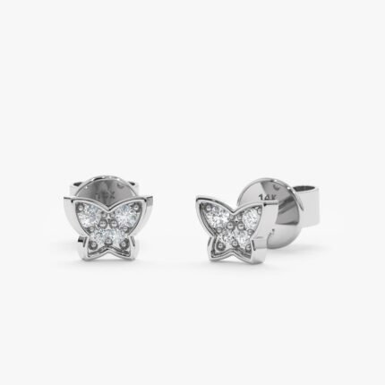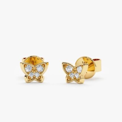 Elevate your style with our Mini Natural Diamond Butterfly Studs, crafted from solid 14k gold. Adorned with sparkling diamonds, these earrings offer elegance and charm.