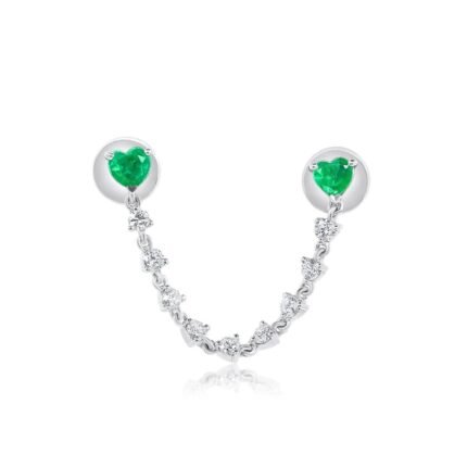 14K Solid Gold Emerald Heart Lab Grown Diamond Chain Connecting Earring